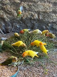Come da titolo cedo coppie e pulli dí inseparabili roseicollins di molte mutazioni! Anellati Foi dal piumaggio perfetto! Per qualsiasi info contattatemi ! I prezzi variano in base alla mutazione