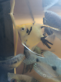 Cedo vari pesci in esubero perché rimasti esclusi dalle coppie già formate e li ho dovuti mettere con altri pesci che ho già venduto in una vasca a parte ed adesso sono rimasti solo loro che vivono insieme. Si tratta di una coppia d scalari , uno nero e uno Koi d taglia media e due trichogaster uno enorme giallo maschio e uno più piccolino azzurro femmina. Li tolgo 20€ in blocco x chi volesse info mi contatti su wathsapp al numero 3271881846. Consegno a mano in Catania e dintorni. No a scambi e regali . Li cedo in blocco perché vivono insieme da sempre.