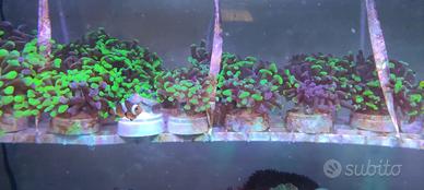Vendo talee varie di coralli su basetta e pesci pagliaccetti di un anno di vita, riprodotti dalla coppia di pesci pagliaccio del mio acquario.