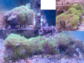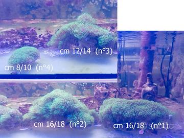 - Veliferum € 60 taglia M (cm 10). - Caulastrea su roccia, circa 13 bocche in crescita €100. - Ramo di Goniopora attaccato alla pietra € 30 (è una parte del complesso visibile). - Briareum: 1 € 60 2 € 60 3 € 40 4 € 30 5 € 60 6 € 40 7 € 60 Le misure sono orientative, gli animali una volta portati via, hanno la vendita: "Visto e piaciuto".