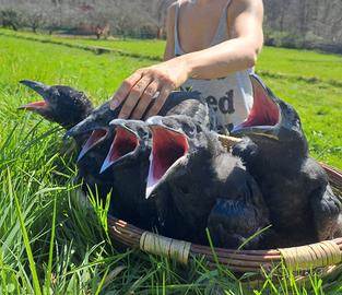 Disponibili pulli di Corvus corax nati nel mio allevamento. Esperienza di 20 anni. Disponibilità per consulenze e condizionamento al volo libero e semilibertà controllata.