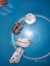 vendo 4 criceti (3 femmine e 1 maschio) della stessa cucciolata ,sono criceti russi di circa 1 mese e mezzo (nati il 10 gennaio) e molto giocherelloni