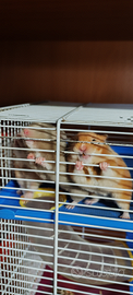 Cedo criceti dorati. Uno color rossiccio maschio e l'altro color grigio femmina, inoltre cedo le due gabbie e alcuni accessori.