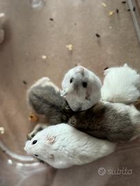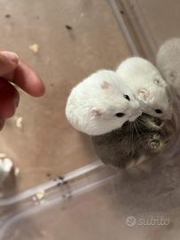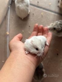 Vendesi criceti nati in casa da poco mangiano e bevono da soli docili e coccolosi bianchi e grigi 5 euro l'uno 3317445922 interessati whatsapp scrivetemi