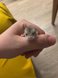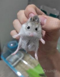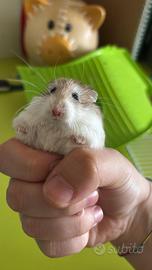 due criceti mamma e figlio compreso di gabbia pellet cibo sabbia abbeveratoio e accessori vari