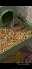 Posso venderli separatamente o insieme ma ormai sono come sorelline e volendo potete chiedermi a parte se avete bisogno del cibo/segatura/pallina verde nuova da lasciare per casa con cui farli correre, la ruota interna gabbia e la gabbia a due piani con "scivolo", casetta, bevatoio, ciotola cibo, tunnel e tubi colorati anche sporgenti da fuori che rientrano dentro la gabbietta.