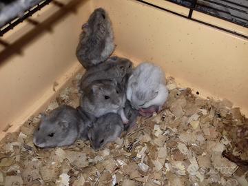 Disponibili Criceti russi di diverse tonalità di colore: grigio, grigio strato, bianco.