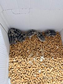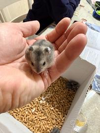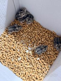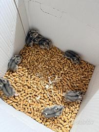 Piccoli di criceti russi pronti per essere accolti nelle nuove famiglie mangiano già autonomamente