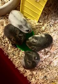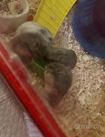 3 criceti piccolini nati 1 mese e mezzo fa circa. prezzo 7€ oppure scambio un criceto con un'altra gabbietta per criceti siccome mi servirebbe.