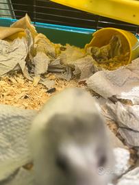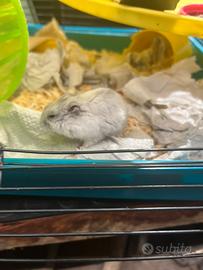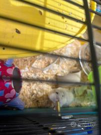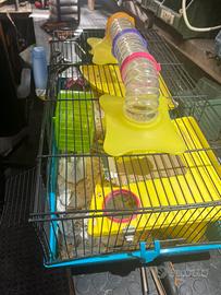 Regalo criceto con gabbia più mangiare. Il criceto sta bene e la gabbia è circa 40per 50cm molto carina