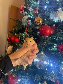 Piccola cricetina nata il 12 settembre 2025, è abituata ad essere manipolata dai bambini e non è mordace. Il pelo è lucido e fitto.