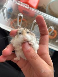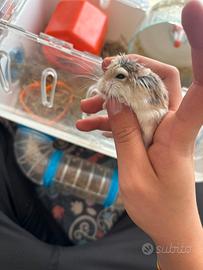 Criceto Roborovski coccoloso con tutto il necess