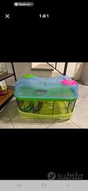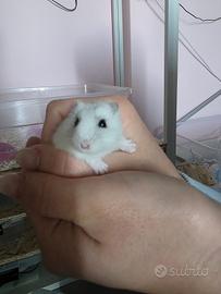 Vendo criceto russo con gabbia su due piani con annessi gadget come abbeveratoio, tubi per giocare, substrato, ciotola, cibo e