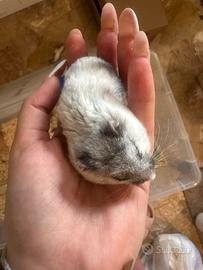 È una criceto russo Winter White, dolcissima e abituata alla presenza umana. Ha poco meno di un anno ed è stata sempre curata con amore.
