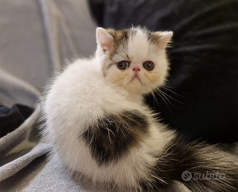 Allevamento amatoriale Tesori di Aphrodite vende Morfeo, cucciolo di gatto exotico di 3 mesi con pedegree Enfi, sverminato, doppia vaccinazione, abituato alla toelettatura quotidiana e alla lettiera, al tiragraffi, al bagnetto.