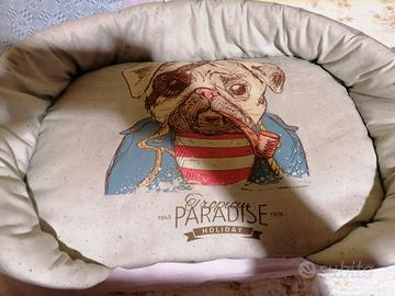 cuccia e abito in pura lana azzurro , quasi nuovi. pe r cane di mezza taglia.