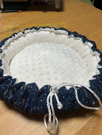 Cuccia rotonda fatta a mano per furetti, porcellini d'india, conigli nani, ricci, cani e gatti di piccola taglia. Diametro (quando chiuso) 35cm.