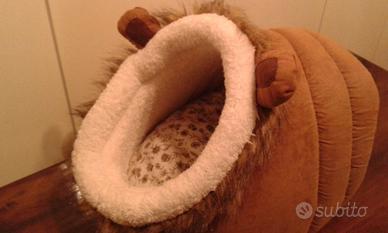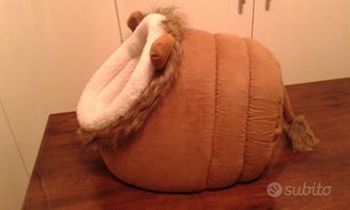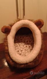 simpatica cuccia bicolore per gatto o cane di piccola taglia a forma di leone.