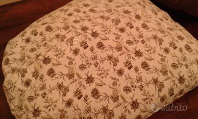 l'interno è imbottito in lana merinos e la seduta è costituita da un morbidissimo cuscino (rivestito appositamente dalla sarta in tessuto in cotone flanellato floreale in tinta) sfoderabile per una igiene facilitata.