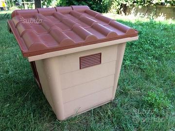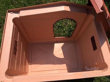 Cuccia in PVC per cane o gatto (cane fino a taglia media) mai utilizzata. Notare l'etichetta di acquisto sul fondo. Acquistata come seconda cuccia da giardino. Completamente lavabile, c'e' la possibilità di smontare il tetto con 4 viti. Pulizia e igiene garantiti.