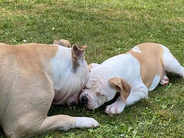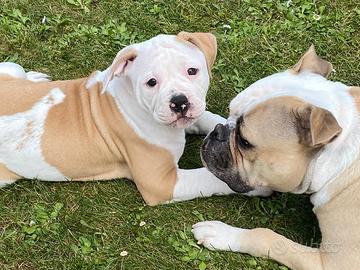 Splendida cucciola di Bulldog Americano nata il 10/01/26. Cedibile dopo i 90 giorni come previsto da regolamento di Regione Lombardia. Femminuccia con colori classici. Manto bianco pezzato marrone. Ideale per la famiglia, ottimo carattere, fedele compagna ed ottima per addestramento e lavoro. Genitori con ottime linee di sangue nazionale ed internazionale con doppio pedigree, selezionati per standard di razza, carattere e tipicità, DNA depositato per entrambe i genitori. Non si effettuano spedizioni a mezzo staffetta. Solo ritiro di persona. Primo contatto tramite messaggio e successivo telefonico per conoscenza ed info. Si affidano solo a persone responsabili e dopo nostra valutazione. La cucciola verrà ceduta con: - Pedigree. - Vaccinazioni complete. -3 Sverminazioni. - Libretto sanitario. - Microchip. - Iscrizione Anagrafe Canina. - Visita medica presso clinica veterinaria di riferimento. - Puppy kit per i primi giorni.