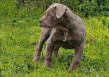 Cucciola femmina di American Bully XXL nata il 14 gennaio. La cucciola verrà consegnata con vaccinazioni regolarmente effettuate ciclo di sverminazioni completo libretto sanitario microchip inserito iscrizione all'anagrafe canina e certificato di buona salute. Test genetico del colore effettuato portatrice di cioccolato e nero. Possibilità di pedigree ABKC e di consegna personalizzata.