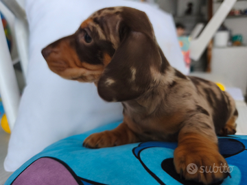 Disponibile cucciola di bassotto nano, figlia di genitori confermati in taglia nana, pedigree enci, DNA depositato. Disponibile da marzo 2026, si cedera' con ciclo di vaccinazione e vermifugo espletati. una femminuccia cioccolata. Nata in casa di meraviglioso carattere. NON IN REGALO. costo di un cucciolo con Pedigree Enci.