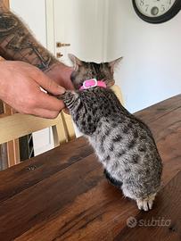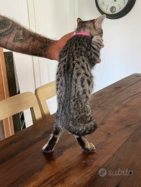 Cucciola di 3 mesi razza Bengala colore Silver spotted. La gattina e disponibile da subito, vaccinazione eseguita e libretto sanitario. Info 3801837165