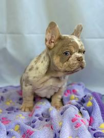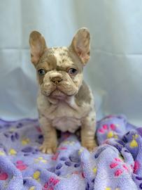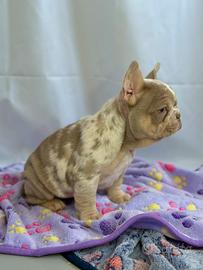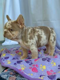 Allevamento amatoriale nel Lazio dispone di cucciola femmina di bulldog francese esotico, colorazione Isabella Newshade merle tan carrier fluffy