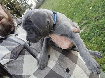 Disponibile da subito cucciola di Cane Corso, grigia ad occhi chiari. La cucciola ha 70 giorni di età, figlia di ottimi cani di famiglia e guardiani. La cucciola è nata in casa ed è molto ben socializzata, abituata a cani, gatti ed animali di fattoria, molto affettuosa con le persone, ideale per famiglie. La cucciola si cede con tutti i vaccini e gli adempimenti sanitari del caso.
