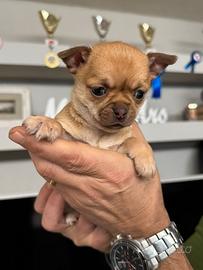 Disponibile cucciola di chihuahua pelo corto colore cioccolate nata il 10/11/25. Si cede a 70 giorni di vita con pedigree, microchip, iscrizione all'anagrafe canina (se residenti in Toscana), 2 cicli di sverminazione, ciclo vaccinale avviato, il giorno della consegna con antiparassitario fatto, kit cucciolo, libretto sanitario, contratto.