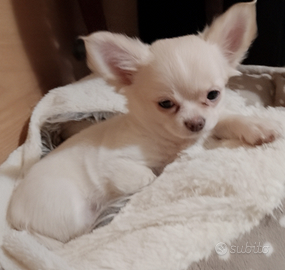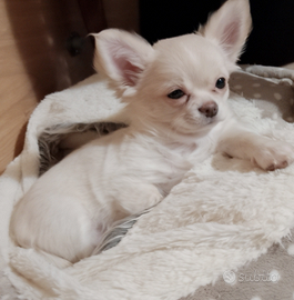 Cucciola chihuahua pelo lungo crema tre mesi già vaccinata con microchip e pedigree enci genitori visibili