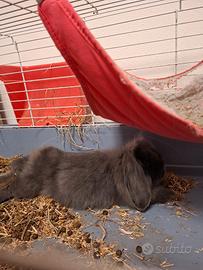 Vendesi cucciola di coniglio ariete blu nano di circa 8 mesi, già vaccinata. Carattere molto buono, ama stare in braccio e non morde le persone. Abituata a stare in casa con due cani e un bambino. Disponiamo (incluso nella vendita) del suo libretto, la sua gabbia con accessori, un amaca nuova, guinzaglio e pettorina, spazzola, mangime, lettiera.
