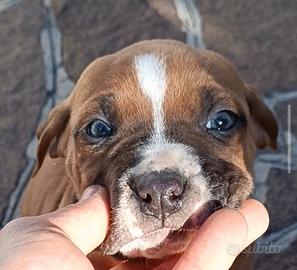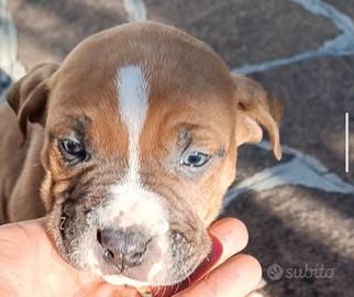 Disponibile bellissima cucciola di Amstaff nata il 20.11.2025 La madre e il padre come in foto sono di mia proprietà e visibili assieme alla piccola. Sara ceduta solo con il primo ciclo di sverminazione. Per altre info e foto 3463060786
