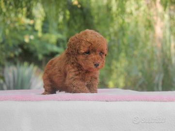 Magnifica cucciola di Barboncino subito disponibile. Si chiama Lolly (nome indicativo), una stupenda femminuccia rossa di 2 mesi di età. È dolce, adorabile, piena di energia e amante del divertimento. Rappresenta al meglio le caratteristiche del Barboncino.
