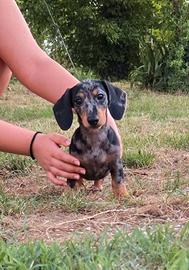 Allevamento riconosciuto Enci/Fci Hilo De Plata dispone di una cucciola di bassotto arlecchino silver ( 1 femmina). Mamma nero focata NANA e papà arlecchino cioccolato KANINCHEN. Verrà ceduta con microchip, ciclo vaccinale completo, sverminazioni, libretto sanitario, pedigree Enci e contratto di cessione del cucciolo. Assistenza da educatore cinofilo presente in struttura. LA CUCCIOLA NON E' IN REGALO.