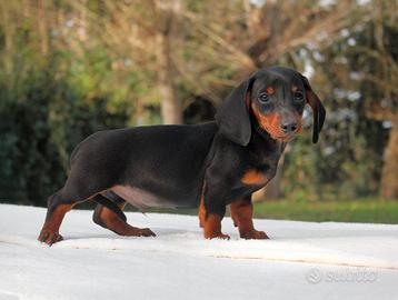 Zola (nome indicativo) è questa splendida cucciolina femmina di Bassotto nero focato di 2 mesi di età. Elegante, vivace e con un carattere affettuoso, ha quella tipica camminata "da regina" che rende i Bassotti ancora più irresistibili. Tenerissima e giocherellona, porterà tanta gioia in famiglia.