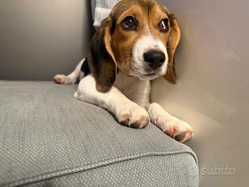Vendo cucciola di beagle di mesi 4 con pedigree, microchip, sverminata e vaccinata al completo. Tutto documentato. La devo dare per cambio improvviso di situazione lavorativa con relativo trasloco. Regalo anche kenrel e trasportino.