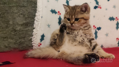 Vendo stupenda cucciola di British Shorthair con colorazione Golden tabby di tre mesi. Carattere dolcissimo, cresciuta con amore in famiglia. Viene ceduta con tutta la profilassi sanitaria del caso è pedigree ANFI da compagnia.