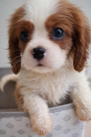 Disponibile ultima stupenda cucciola di cavalier king charles spaniel blenheim di quasi 2 mesi. La cucciola ha pedigree enci e genitori testati ed esenti da patologie (occhi, cuore e rotule) e test genetici clear. La cucciola sarà disponibile da metà febbraio e sarà provvista di doppio vaccino, doppia sverminazione, iscrizione ad anagrafe canina, libretto sanitario, certificato di salute e kit cucciolo. La cucciola è nata e cresciuta in ambiente domestico ed è visibile insieme ai genitori. Se realmente interessati potete contattarmi al seguente numero 320 3157031