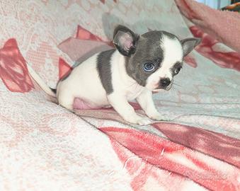 Cucciola di chihuahua con pedigree pelo raso bianca e lilac due mesi abbituata a fare i bisogni sui tappeti igienici la cucciola viene ceduta con vaccino microchip libretto sanitario e pedigree ENCI per ulteriori informazioni contattare telefonicamente o tramite whatsapp grazie 3273635945