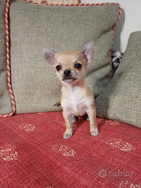 Privato dispone di cucciola di chihuahua pelo corto color beige nata il 23 /9. La cedo sverminata con microchip primo vaccino e libretto sanitario. Passaggio di proprietà ats a mio carico. La piccola è nata in casa è abituata a bambini e vita familiare. Genitori con pedigree. Disponibile da subito gradito contatto telefonico o via whastapp al 3271161683 per maggiori informazioni e video . Grazie.