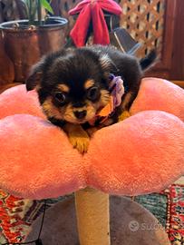 Prenotabile cucciola femmina bellissima pelo lungo di Chihuahua colore tricolor black figlia di multicampione e riproduttore selezionato Enci è, nata il 23/09/25 verrà ceduta il 20/12/25 con vaccino microchip pedigree Enci e certificato veterinario che accerta la salute della cucciola. Genitori testati per la lussazione della rotula NON È IN REGALO!