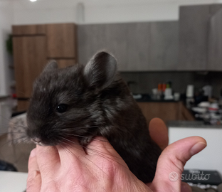 Vendo graziosa cucciola di cincillà di circa 2 mesi, dal morbido pelo nero, molto mansueta e abituata al contatto umano.