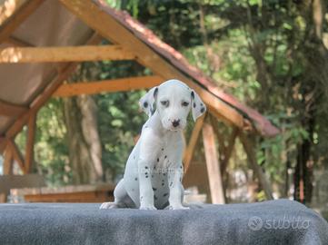 Cucciola allegra, coccolona, gioiosa, e davvero infermatile quando si tratta di giocare. Vi assicuriamo che con questa piccola cucciola di Dalmata è davvero difficile annoiarsi.