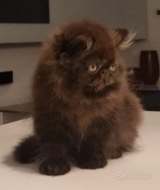 Disponibile cucciola persiana nera, da allevamento ad alta genealogia riconosciuto ENFI e CFA. E' affettuossisima e molto dolce, ben socializzata con altri animali e bambini, abituata alla lettiera e al tiragraffi. Potrà essere affidata a metànovembre. Verrà ceduta con libretto sanitario, certificato veterinario di buona salute, ciclo vaccinale completo, sverminazione comprensiva di protocollo Giardia, esame genetico PKD genitori, Ecocardiogramma genitori, esenzione Fiv e Felv, certificazione titoli genitori, passaggio di proprietà e Pedigree a nostro carico. E' necessaria presentazione per accertarci che la cucciola verrà accolta in un ambiente adeguato e cresciuta con amore. Consegnamo personalmente in tutta Italia ed Europa. Chiamare per maggiori infirmazioni al 347 4624346.