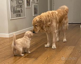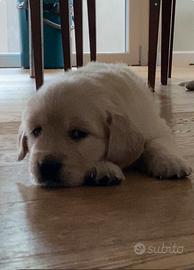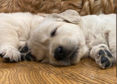 Disponibile una cucciolA di Golden Retriever di quasi 2 mesi. Entrambi i genitori sono di linea inglese e corredati di certificati di pedigree e displasia. Ottima genealogia pluripremiata. La cucciola sarà ceduta con: