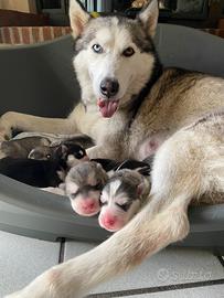 Allegati: foto padre (pelo nero occhi marroni), foto madre (pelo grigio mix occhi etero cromatici).