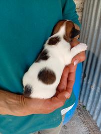 Cucciola di Jack russel tricolore , zampa corta, pelo corto. Genitori visibili. Sverrminata, vaccinata, e libretto sanitario. La cucciola sara' ceduta solo al compimento dei 65 giorni di vita. Solo interessati .