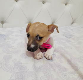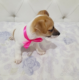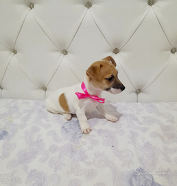 Vendo bellissima cucciola di jack russell, zampa corta, colore bianco fulvo, carattere docile e socievole. La cedo svezzata, con ciclo di vermifugo effettuato, ciclo vaccinale avviato, antiparassitario inserito, microchip inoculcato, libretto sanitario certificato. Genitori di mia proprietà, prezzo 400 euro